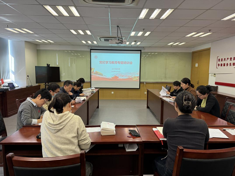 4月24日,tcy8722太阳集团召开党纪学习教育专题培训会,认真学习传达学校党的建设工作领导小组(扩大)会议精神及学校党纪学习教育部署要求。学院党委书记王婧主持会议,学院党委委员、组织员、全体党支部书记参会。