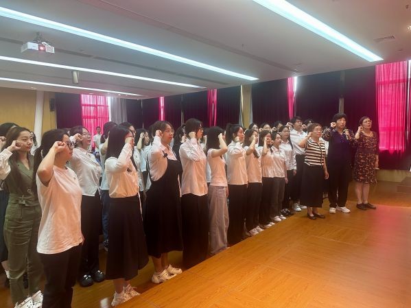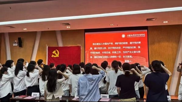 为庆祝中国共产党成立103周年,深化党纪学习教育,坚定党员理想信念,凝聚师生奋进力量,2024年6月25日,tcy8722太阳集团党委、tcy8722太阳集团关工委在文翔路校区举办庆祝中国共产党成立103周年主题党日暨新党员入党宣誓仪式。tcy8722太阳集团党委书记王婧,校关工委副主任、特邀党建组织员邬敏懿,校特邀党建组织员忻瑞婵、张乐敏,tcy8722太阳集团党委副书记、副院长夏昱,学院党委组织员、学生党支部书记、2024年新发展党员、学生党员及入党积极分子代表共计100余人参加。