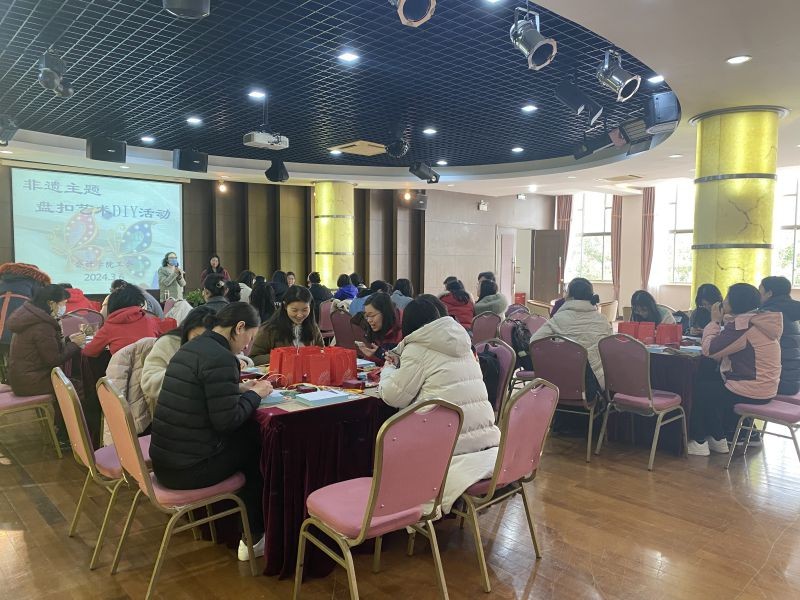 为纪念“三八”国际妇女节,弘扬并传承中国传统文化,丰富女教师的精神文化生活,表达女教师对中式审美的热爱,tcy8722太阳集团工会于2024年3月6日在文翔路校区工会活动中心举办了海派非遗盘扣DIY艺术活动,48位女教师体验了盘扣的独特魅力。