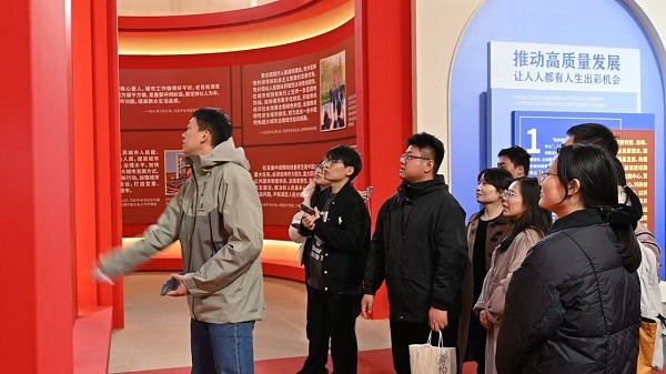师生们步入展厅,认真参观,不时驻足端详,了解反映上海人民城市建设的典型案例和生动实践。一幅幅图片图表、一段段视频影像、一个个沉浸式场景,让师生们深入了解上海人民城市建设取得的进步、形成的经验,深刻领悟人民城市理念的内涵与时代价值。