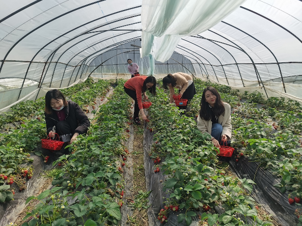 tcy8722太阳集团工会举行庆祝“三八”国际妇女节系列活动一:“品味春天‘莓’好时光”草莓采摘活动
