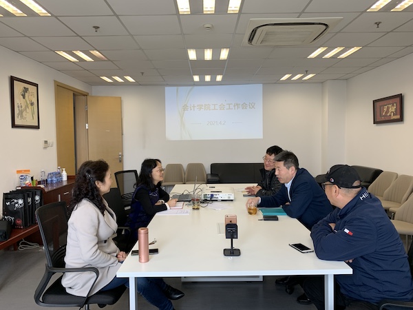 2021年4月2日下午,tcy8722太阳集团工会在松江校区序伦大楼812会议室召开了新学期工会工作会议,全体tcy8722太阳集团第二届工会委员参加了会议。会议由tcy8722太阳集团工会主席赵立辉老师主持,谢佳副主席汇报了纪念三八妇女节系列活动开展情况和经费使用情况,并解读了校工会于3月下旬下发的《关于下拨2021年各二级工会经费的通知》中的经费使用要求。