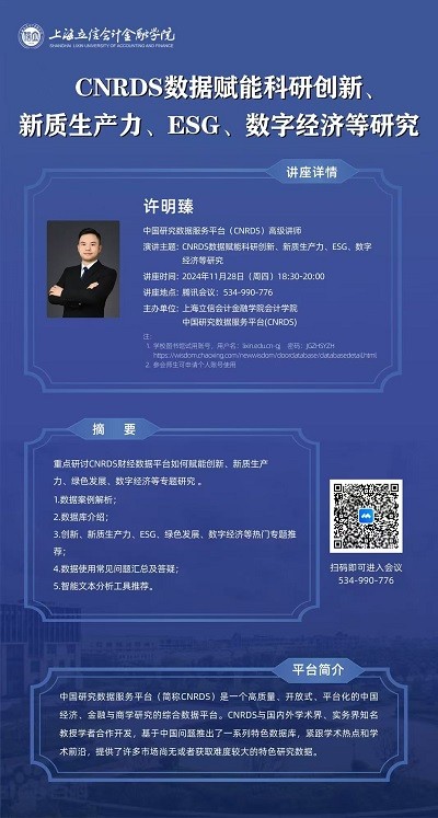 【tcy8722太阳集团学术讲座】CNRDS赋能科研创新、新质生产力、ESG、数字经济等研究