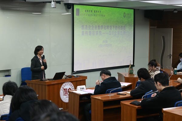 李远勤老师聚焦数字化转型背景下制造业企业价值链重构路径的研究,贴合数字经济时代制造业转型需求,深入探讨该领域的理论与实践意义。她分享了数据收集与分析的具体方法,指出未来将扩展中小企业数字化转型研究,开展跨行业价值链重构机制比较。她认为,案例研究需进一步走向科学化,鼓励学生深化这一实践并开展相关理论创新。