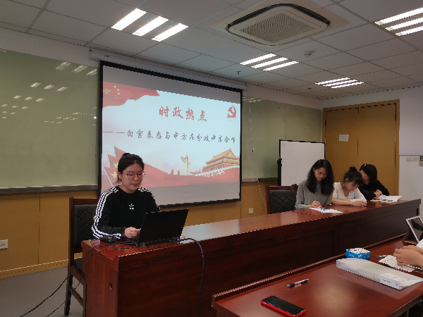 本次活动由理论学习和观点交锋两部分组成。理论学习部分就习近平总书记“当前中国处于近代以来最好的发展时期,世界处于百年未有之大变局”这一段论述展开。支部书记杨晓萌带领全体支部成员共同学习习近平总书记这一重要论述,深入分析了“大变局”的内涵和发展趋势,明确了“百年未有之大变局”深远的现实意义。
