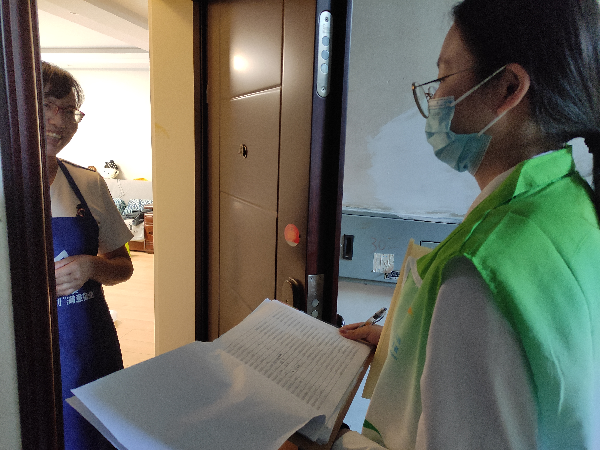 学生志愿者协助银源居委干部开展“敲门行动”,进行地毯式排摸,挨家挨户做好疫苗宣传动员。为不断扩大宣传覆盖面,提升居民知晓率,志愿者们以面对面的方式为居民讲解接种疫苗的重要意义,悉心嘱咐居民们疫苗接种的前期准备,并号召广大居民相信科学,积极主动参加疫苗接种,共同营造良好的接种氛围。