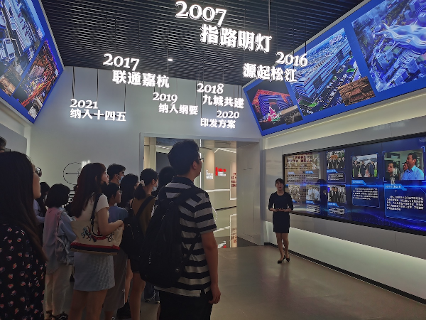 随后,全体党员来到长三角G60科创走廊展示馆,参观了发展历程、科技创新、制度创新、党建引领四个展厅,了解G60科创走廊的建设背景、总体规划定位及发展目标,通过展厅实物直观了解九个城市在人工智能、高端装备、集成电路、新材料、新能源汽车、生物医药等战略性新兴产业的发展成果,真切感受G60科创走廊科技创新、制度创新的双轮驱动成效。