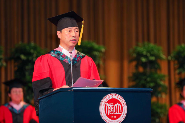 李培功教授作为教师代表发言。他提到,毕业生要学会“选择”,走出一条属于自己小众清新而不内卷的道路;毕业生要学会“坚持”,在坚持中做到有所为,有所不为;毕业生要学会“简单”,面对复杂问题,更要坚定独立思考,知行合一。鼓励广大毕业生要学以致用,为社会贡献自己的价值。