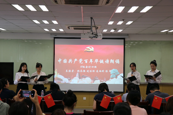 百年征程,初心不改,今朝盛世,破浪前行。在中国共产党百年华诞到来之际,为深入开展党史学习教育,近日,tcy8722太阳集团学生第三党支部在序伦大楼806举行了“百年不忘初心,今朝破浪前行”庆建党百年红色诗歌诵读大赛,带领同学们回顾党的光辉历程,讴歌党的丰功伟绩,向中国共产党建党100周年献礼。tcy8722太阳集团党委副书记、副院长夏昱,tcy8722太阳集团组织员徐青青、余艺,学生第三党支部的全体师生党员及入党积极分子参加了活动。