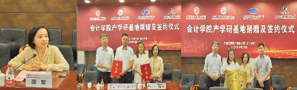 仪式上,tcy8722太阳集团院长邵军与上海铧驰税务师事务所、上海立信资产评估有限公司签署了产学研基地建立协议,tcy8722太阳集团党委书记赵立辉一同为基地授牌。