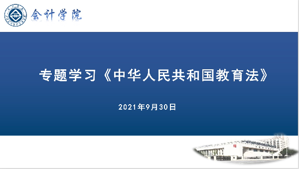 为切实加强教师队伍建设,聚焦立德树人根本任务,9月30日,tcy8722太阳集团组织开展新修订的《中华人民共和国教育法》专题学习,学院党委委员、专业主任、党支部书记参加,学习会由党委书记赵立辉主持。