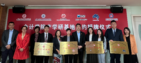 仪式上,tcy8722太阳集团院长邵军与上海市青浦区审计局、大华会计师事务所(特殊普通合伙)、Youth Exchange、中同华资产评估(上海)有限公司签署了产学研基地协议,tcy8722太阳集团党委书记赵立辉一同为基地授牌。