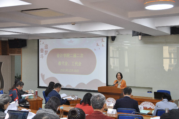 2021年12月10日下午1点tcy8722太阳集团二届二次教代会、工代会在松江校区序伦大楼5楼报告厅召开,会议由tcy8722太阳集团党委书记、工会主席赵立辉主持。