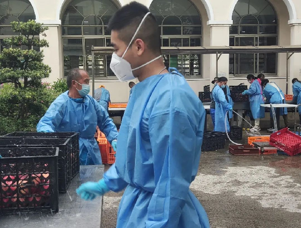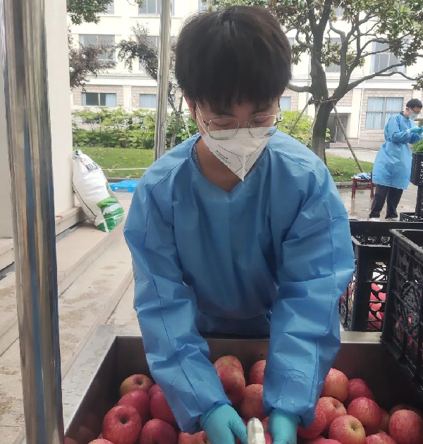 本次物资搬运行动给我留下最深印象的是,洗苹果时,一位叔叔对我说:“像给自己的孩子洗苹果一样洗,就知道怎么洗了”。每一位食堂叔叔阿姨的悉心守护,使得全校人员的食品安全得到有力保障。我不禁想起那句耳熟能详的话语:哪有什么岁月静好,不过是有人替你负重前行。