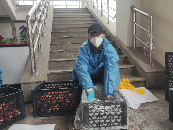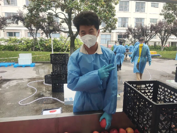 在一次又一次的水果搬运中,我看到同行的领导老师们即使已经两鬓微白,却仍然冲锋在抗疫工作的第一线。而作为青年的我们,便更没有理由喊辛苦、要退缩,此次工作需要我,我必当不畏困难、全力以赴,用自己的实际行动践行作为一名退伍军人的青春担当。