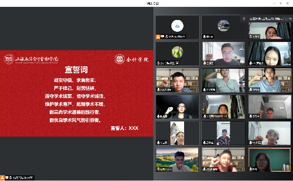最后,全体2022级审计硕士研究生在2021级研究生代表王清玉同学的带领下,郑重宣誓:“我承诺:诚实守信、求真务实、严于律己、刻苦钻研,遵守学术规范,恪守学术诚信,维护学术尊严,抵制学术不端,做高尚学术道德的践行者,做优良学术风气的引领者。”