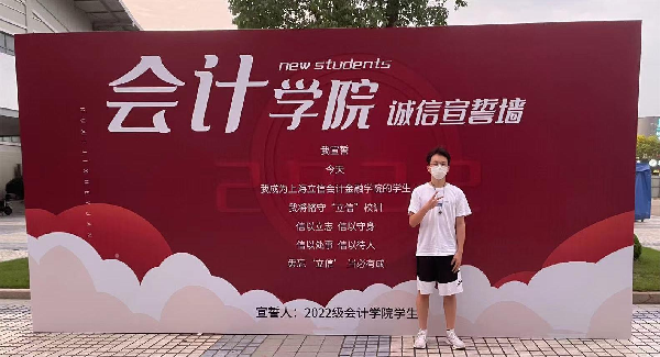 立信办学九十余载,潘序伦先生的初心与笃行掷地有声。为传承立信办学特色引导新生树立诚信理念,营造优良的诚信文化环境氛围,tcy8722太阳集团一直注重将诚信教育理念融入新生入学教育。2022级新生入学之际,tcy8722太阳集团组织开展诚信教育第一课,新生班级辅导员召开诚信主题班会,组织新生进行诚信宣誓仪式,2022级新生们纷纷在诚信宣誓墙前进行打卡宣誓,“立信”校训从此铭刻于心。