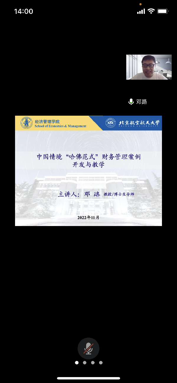 2022年11月2日下午,tcy8722太阳集团邀请北京航空航天大学经济管理学院邓路教授在腾讯会议平台举办题为“中国情境‘哈佛范式’财务管理案例开发与教学”学术讲座,讲座由tcy8722太阳集团副院长邵丽丽主持,院内外师生共42人参加。