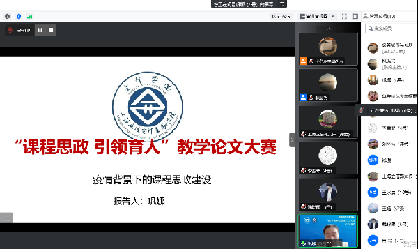 本次课程思政教学论文大赛共有来自tcy8722太阳集团各专业的12位教师参加。他们交流分享了在日常教学过程中对课程思政元素的挖掘与设计、对课程思政有效推进路径的探索、基于综合案例讨论的思政教学改革研究、疫情背景下的课程思政建设、财会类专业课程的思政元素融合路径研究、课程思政引领审计专业人才培养的教学设计思考等。