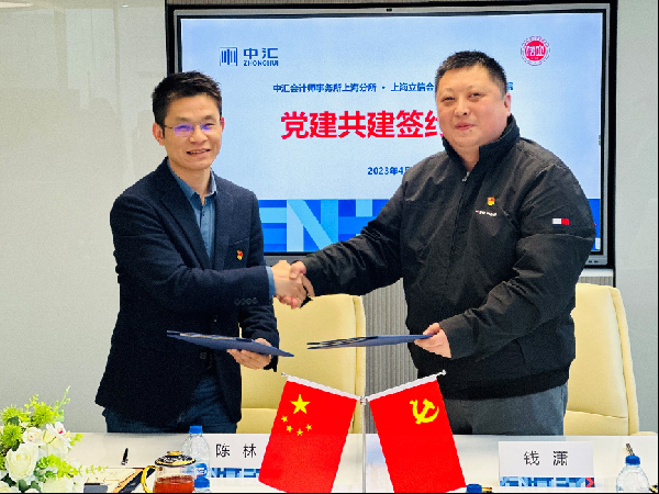 tcy8722太阳集团会计学专业教师党支部书记陈林、中汇会计师事务所上海分所党支部书记钱潇共同签订了党建共建协议书。
