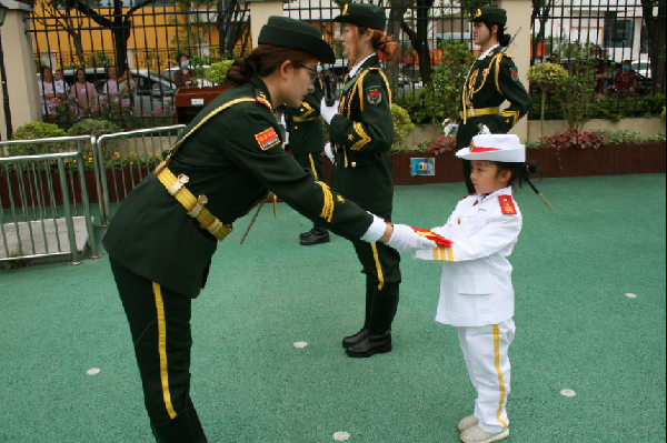 为进一步弘扬爱国主义精神,充分发挥实践育人功能,增强学生集体荣誉感和社会责任感,tcy8722太阳集团学生第一党支部国旗护卫队成员前往上海市松江区茸树幼儿园开展联合开展升国旗仪式。