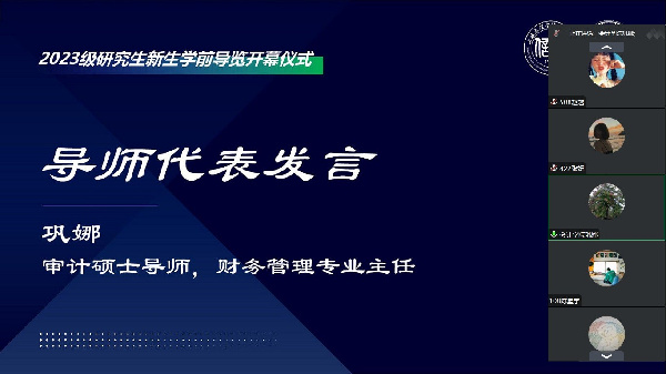 审计硕士导师、财务管理专业主任巩娜代表审计硕士校内外导师为同学们介绍了研究生阶段的学习特点,帮助大家尽快进入学习状态。巩娜表示,研究生阶段的教学更多会采取案例教学的方式,上课形式更加灵活多样,综合培养同学们的知识吸收能力、团队合作能力与沟通表达能力,需要大家转变学习思路与学习方法,变被动为主动;学校与学院会为同学们安排实习实践环节,也会组织很多学术活动和科研项目,希望大家积极参与,在实践与科研中深刻领会专业知识,为完成高质量的学位论文打好基础。