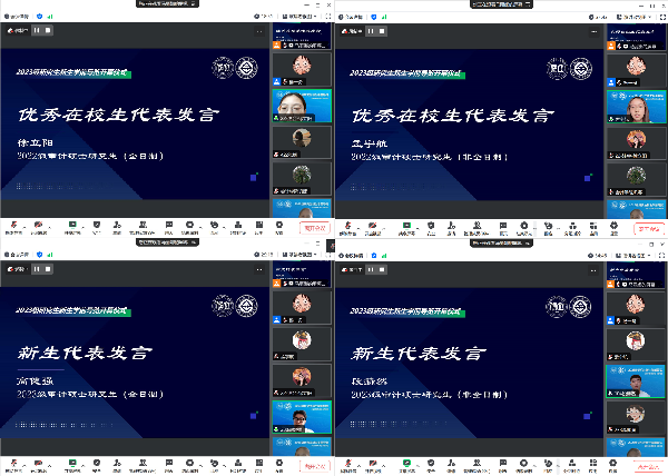 2022级全日制审计硕士研究生徐立阳、非全日制审计硕士研究生孟宇航代表所有2022级审计硕士研究生向全体新生表达了欢迎,并结合自己的立信求学经历向学弟学妹们分享了在研究生阶段的学习、实践、生活经验,建议同学们提前确定目标,坚持学习,充分利用学校的学习与实践资源提升自己,祝愿同学们成为具有家国情怀、坚守理想信念、践行实干肯干、肩负责任担当的新时代研究生。2023级全日制审计硕士研究生高健强、非全日制审计硕士研究生段赫然代表所有新生向所有关心同学们的老师、学长学姐表达谢意,并表示,同学们怀揣追求卓越、追求知识、实现梦想的目标来到立信,会好好珍惜在立信的读书时光,努力学习,提高学术水平和综合素质,积极参与各种活动,发掘自身潜力,为实现个人价值和学校发展做出贡献。