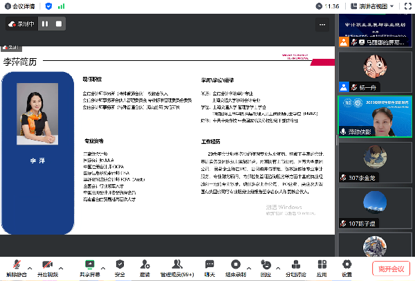 8月30日下午,审计硕士校外导师、立信会计师事务所权益合伙人李萍为新生做主题为“审计职业发展与学业规划”的职业发展专题讲座,tcy8722太阳集团副院长何芹主持。李萍老师从自己求学、就职的经历出发,与大家分享了她从一名优秀毕业生成长为立信会计师事务所权益合伙人、专业标准管理委员会委员的成长历程。她表示,成功的必备要素包括了健康的身体状态、丰富的专业知识储备、终身学习的积极心态、高效的时间管理技能,建议同学们保持边学习边积累的有效学习节奏,每天及时复盘,希望大家能够把握时机提升自己的软硬实力,早日成为能够跟企业齐头并进的高端审计人才,为中国审计事业的蓬勃发展贡献自己的力量。