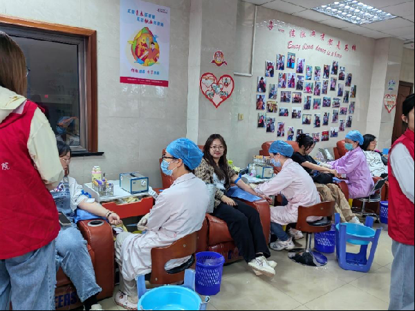 迎着清晨的阳光,参加献血的同学早早集合在长乐楼,统一乘坐班车前往松江区血站。献血现场,在医务人员和志愿者的指引下,参加献血的同学认真配合做好填写献血登记表和健康征询表、测量血压、采血检验等准备工作。献血志愿者提前了解了献血相关知识,并做好了献血准备和个人防护,在经过严格筛选后,同学们依次进入采血室,卷起袖子,献出自己的一份爱心。
