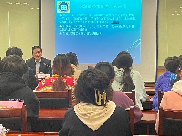 2023年11月13日上午9:30,tcy8722太阳集团在文翔路校区序伦大楼806会议室举办题为“区块链技术与和会计及审计的发展”学术讲座,讲座由澳门科技大学林志军教授主讲,林振兴副院长主持,30名师生参加。