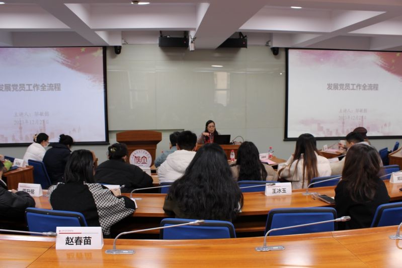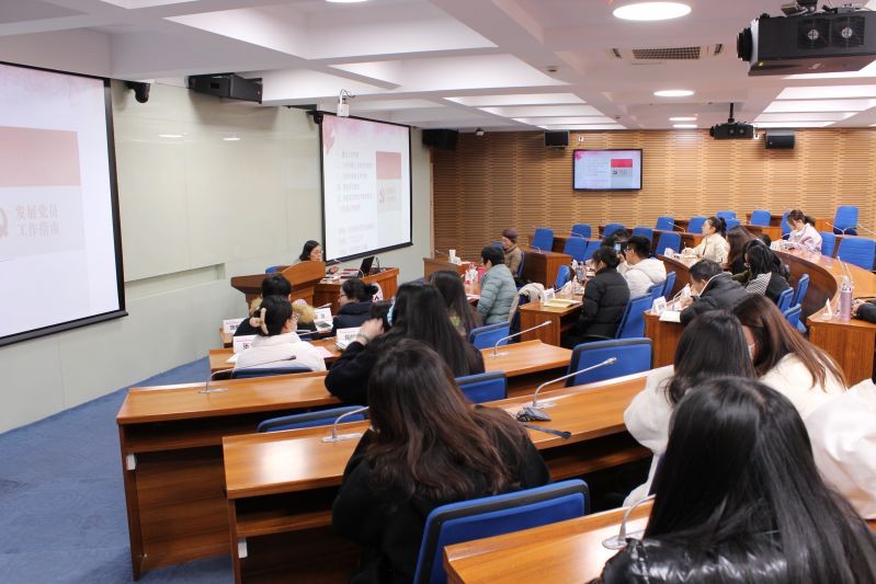 邬敏懿就2023年党员发展工作情况进行了总结,围绕发展党员工作的流程以及常见问题进行了全面介绍和详细指导,忻瑞婵和张乐敏结合工作案例就发展党员材料的审查要点展开培训,重点阐述了发展党员工作流程各阶段的时间节点、工作要点、材料撰写和归档的规范化要求。