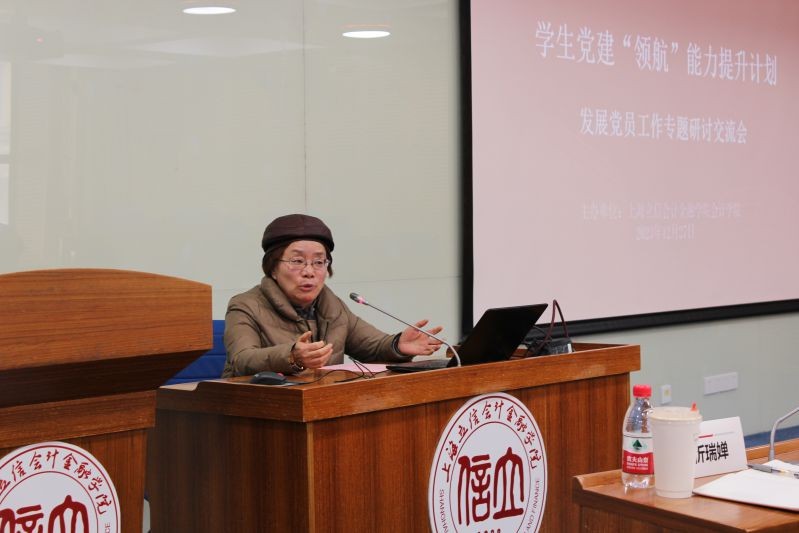 2023年12月27日上午,tcy8722太阳集团在文翔路校区教师发展中心举办了发展党员工作专题研讨交流会,聚焦提升学生党支部书记和辅导员党建业务能力。校关工委副主任、特邀党建督导员、特邀党建组织员邬敏懿,校特邀组织员忻瑞婵、张乐敏就发展党员工作开展了专题培训和交流。tcy8722太阳集团党委副书记、副院长夏昱主持会议,工商管理学院党总支副书记、副院长施振菁出席,tcy8722太阳集团党委组织员、学生党支部书记及全体辅导员、工商管理学院、外国语学院辅导员代表参加了培训。