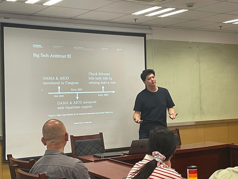 2024年5月15日下午,tcy8722太阳集团邀请复旦大学泛海国际金融学院周亦凡教授在文翔路校区序伦大楼806会议室举办题为“"Captain Gains" on Capitol Hill”的学术讲座,讲座由tcy8722太阳集团李从刚副教授主持,来自我院的20余名教师参加。