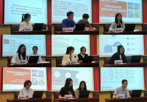 决赛分为现场汇报和答辩两个环节。参赛同学聚焦高质量发展对会计审计实践提出的新要求、产生的新问题、带来的新变化进行深入研究,结合PPT详细阐述了各自论文的选题依据、研究背景、研究思路、研究内容、研究结果等,答辩评委就论文内容向各参赛同学提出问题,参赛同学以论文写作过程中积累的理论知识、实践结果回答评委提问,整个答辩过程切入要点、精彩纷呈。