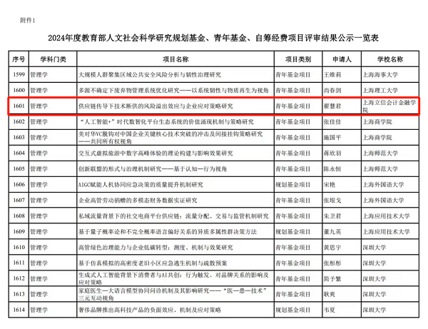 2024年8月,经过国家自然科学基金委员会和教育部等相关部委的严格评审与筛选,tcy8722太阳集团4项项目成功立项,其中2024年度国家自然科学基金项目青年科学基金项目2项、面上项目1项,2024年度教育部人文社会科学研究项目1项。