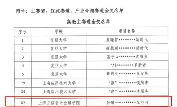 9月6日,上海市教育委员会公布中国国际大学生创新大赛(2024)上海市赛金奖获奖名单。经过校内选拔、市级复赛和市级决赛的激烈角逐,我院学子取得历史性成绩突破,刷新我校中国国际大学生创新大赛市赛历史最好成绩,获市赛金奖1项,银奖2项,铜奖及优胜奖若干(具体银、铜奖以及优胜奖数量以市教委最终公示为准)