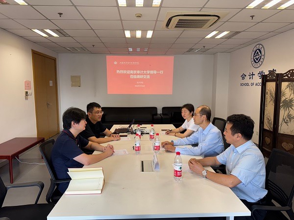 9月30日,南京审计大学副校长陈骏教授,政府审计学院副院长李兆东等一行来我院莅临指导。tcy8722太阳集团院长李培功、副院长林振兴接待了客人一行。