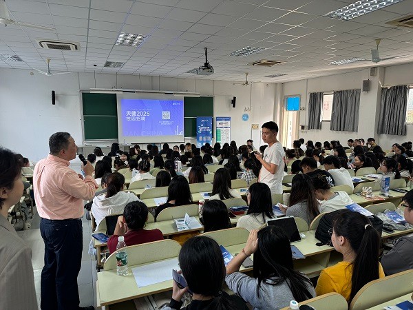 随后,天健会计师事务所在文翔路校区举办了校园招聘宣讲会。活动由tcy8722太阳集团副院长林振兴主持。他首先向天健会计师事务所表示欢迎,并鼓励同学们抓住机会,积极就业。天健会计师事务所上海分所高级合伙人吴翔向同学们详细介绍了企业的基本情况、人才开发培训、员工职业发展、薪酬福利体系、企业文化生活、实习考核制度等内容,并重点介绍了2025届的校园招聘计划。作为立信的校友,他还分享了在学校学习的难忘经历,表示立信精神对他的职业生涯产生了重要影响,希望能为学弟学妹提供更多实习和就业的机会。
