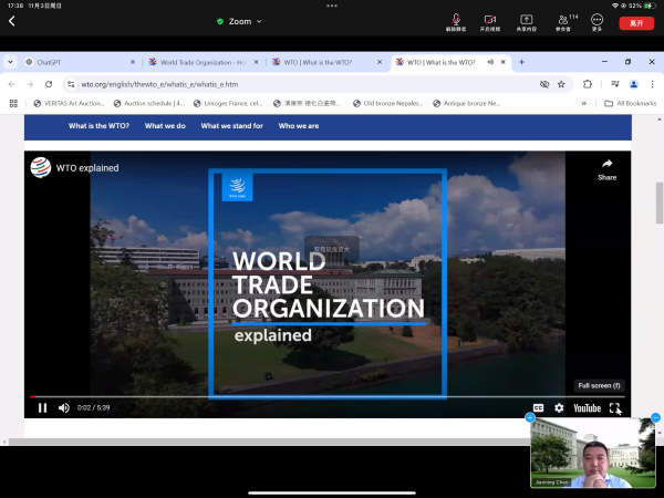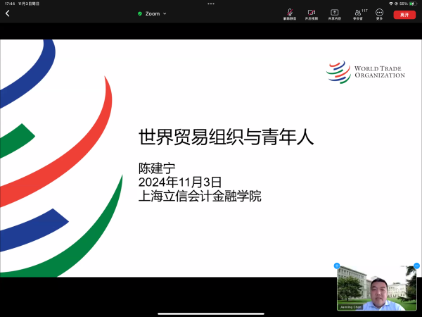 为帮助学生了解就业形势,合理规划职业生涯,tcy8722太阳集团特邀世界贸易组织(WTO)陈建宁老师,于11月3日下午依托Zoom平台举办了 “世界贸易组织与青年人”为主题的就业实习分享会,吸引了近120名研究生、本科生参加。
