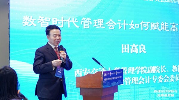 主题报告三是“数智时代管理会计如何赋能高质量发展”,由西安交通大学管理学院、中国会计学会管理会计专委会委员田高良教授特邀报告。田教授介绍了中国数字化发展的现状和未来规划,强调了高质量发展和二十届三中全会要点。报告回顾了管理会计制度的演进,并以美的集团和海尔为例,探讨了管理会计数字化赋能高质量发展的路径。最后,田教授强调了构建数智时代管理会计赋能高质量发展生态系统的重要性,并提出建立“科技赋能、专长赋能、要素赋能、机制赋能”思维赋能虚拟教研室,以促进管理会计数字化转型。