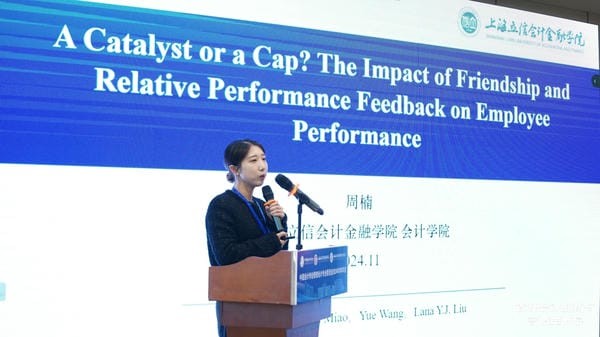 主题报告七是tcy8722太阳集团周楠老师带来的主题为“A Catalyst or a Cap? The Impact of Friendship and Relative Performance Feedback on Employee”的研究分享。她提出,业绩反馈是企业常用的管理控制手段之一,它对于改善员工业绩、提高企业运行效率有着重要的作用。通过实验研究发现,员工之间的友谊作为一种非正式控制可以提高相对业绩评价的激励作用。