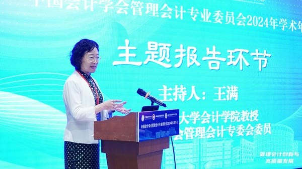 主题报告一是“全面深化管理会计应用的政策动向”,由财政部会计司制度三处处长杨海峰特邀报告。杨海峰处长回顾了管理会计体系建设十年成就与问题,强调《财政部关于全面深化管理会计应用的指导意见》(2024)顶层设计亟待落地,以深化管理会计应用为主线,推进理论体系、指引体系、人才队伍、信息系统和咨询服务市场建设,发挥管理会计在规划、决策、控制和评价等方面的作用,优化资源配置,提高管理水平,助力经济高质量发展。