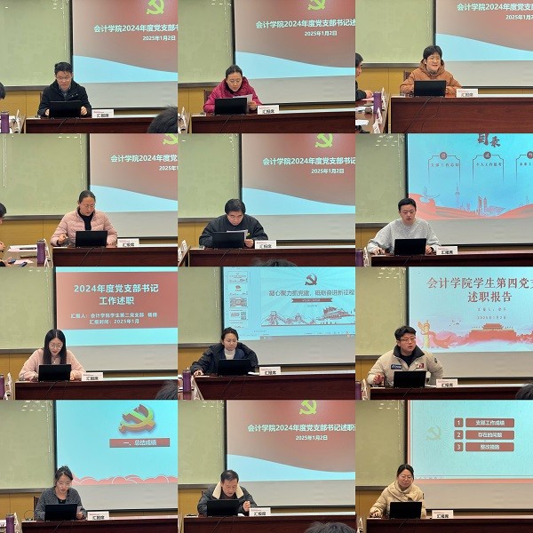 会前,按照校党委组织部通知要求,12位党支部书记撰写述职报告,总结党支部2024年度工作情况。会上,各党支部书记主要围绕思想政治理论学习、党支部标准化规范化建设、党支部战斗堡垒作用、党员先锋模范作用发挥、党建与业务深度融合五个方面的内容逐一进行汇报,总结了2024年支部党建工作的主要做法、取得成效,分析了存在问题及原因,并提出了整改思路和下一步工作举措。与会人员结合现场述职情况和各支部工作任务完成情况进行了测评打分。