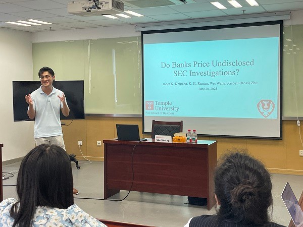 2025年6月20日下午,tcy8722太阳集团邀请美国天普大学福克斯商学院会计学Wei Wang副教授在文翔路校区序伦大楼806会议室举办题为“Do Banks Price Undisclosed SEC Investigations?”的学术讲座,讲座由tcy8722太阳集团院长李培功教授主持,来自我院的10余名教师参加。