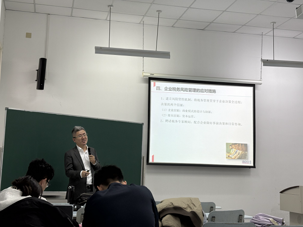 作为审计与税务领域的资深专家,立信会计师事务所高级合伙人张宇老师以“企业税务风险与防范措施”为主题,从税务风险的核心类型、多维成因、全流程管理框架及精准防范措施四大维度,系统解构了现代企业税务风险管理的核心逻辑。讲座中,张老师以审计实务中多起典型税务违规案例为切入点,深入剖析了税务风险产生的根源——既包括商业模式设计阶段的先天合规缺陷,也涵盖税收政策理解偏差、备查资料管理疏漏等执行层面问题,更直指部分企业追求短期利益的侥幸心理。他强调,税务风险管理的核心要义在于“源头防控”,而非事后补救,企业需将税务合规考量贯穿于商业模式设计、交易结构搭建、日常运营管理全流程,通过持续深化税收政策研究、精准把握政策应用边界,实现合法合规前提下的税负优化。张老师的讲座案例翔实、分析透彻,既帮助同学们构建了系统的税务风险管控思维,更引导大家深刻认识到,卓越的税务规划必须深度融入企业战略布局与资本运营全过程,进一步强化了同学们作为未来审计从业者持续学习、敬畏规则的专业责任感。