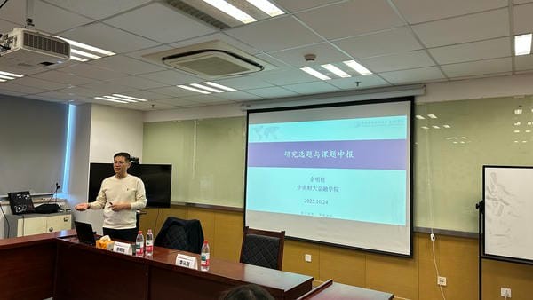 为精准对接国家重大战略需求,厚植培育高水平科研项目,助推学科建设内涵式发展,助力我校第五届学术活动月持续走向深入,10月24日上午,tcy8722太阳集团承办的校第五届学术活动月序伦讲坛特邀中南财经政法大学金融学院院长余明桂教授为我院教师带来一场内容精准、指导性强的国家级项目申报辅导讲座,采取“专题报告+一对一辅导”模式展开。讲座由tcy8722太阳集团副院长(挂职)李从刚主持,tcy8722太阳集团2026年国家级项目预申报教师近20人参加。