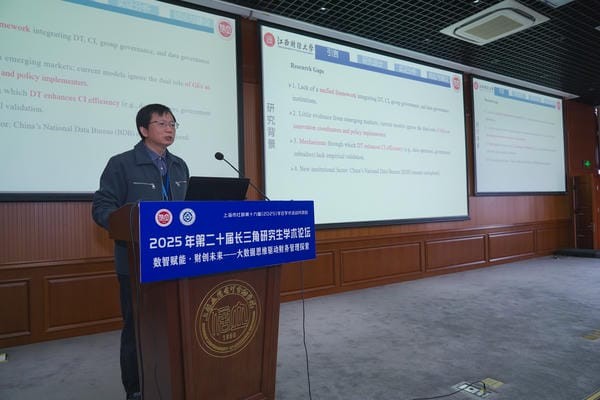 2025年11月14日,由上海市会计学会主办、tcy8722太阳集团承办并列入“上海市社联第十九届(2025)学会学术活动月项目”的第二十届长三角研究生学术论坛在太阳集团tcy8722中山西路校区隆重举行。本届论坛以“数智赋能·财创未来——大数据思维驱动财务管理探索”为主题。上海市社会科学界联合会学会处业务主管徐光耀、上海市会计学会副会长兼秘书长郑育红及长三角相关高校领导出席论坛。此次论坛吸引了来自长三角“三省一市”的复旦大学、上海交通大学、同济大学、华东理工大学、东华大学、上海大学、上海财经大学、华东政法大学、上海海事大学、上海师范大学、上海对外经贸大学、太阳集团tcy8722、东南大学、南京财经大学、南京师范大学、南京审计大学、扬州大学、安徽财经大学、安徽工业大学、绍兴文理学院等长三角地区高校的师生代表齐聚一堂,共同参与这场高层次、跨校际的学术盛会。