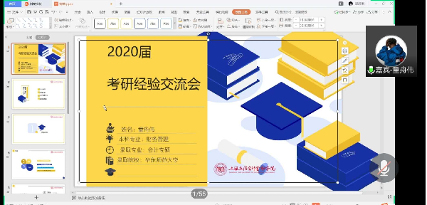 今年考入北京大学的李佳正、华东师范大学的童舟伟、上海财经大学的束若文、上海对外经贸大学的陈海然、辽宁大学的李瑞瑞五位优秀应届毕业生为同学们分享了考研经验,考上北京大学、、等多位在考研或留学申请中成绩优异的应届毕业生向同学们分享备战经验。成功申请到Washington University in St.Louis留学的朱延钰、University of Texas at Dallas的温翰青、IESE商学院的于卓琳、香港城市大学的姜可欣四位优秀毕业生为同学们分享了申请出国留学的经验。