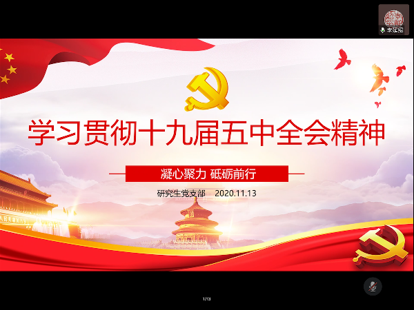 党课结束以后,党员们纷纷表示,作为研究生,要深刻领会十九届五中全会的精神实质和丰富内涵,勤于学习、勇于实践,为建设社会主义现代化强国和实现中华民族伟大复兴奋力拼搏。随后,全体党员云端参观中国共产党的诞生地,并共同观看建党百年献礼片《信仰的味道》,从历史中汲取奋斗力量,在发展中践行初心使命。