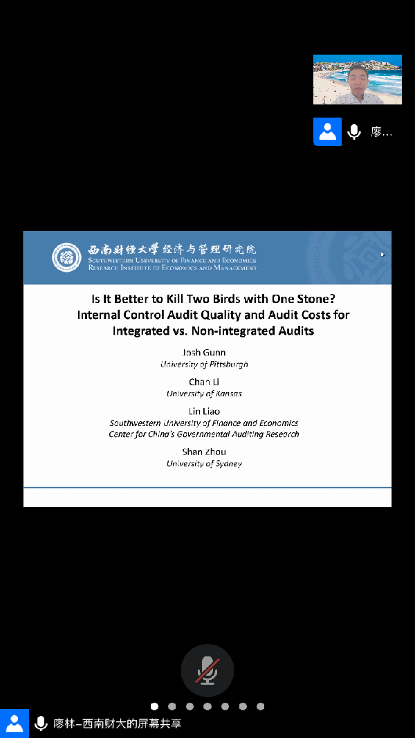 2020年11月20日下午tcy8722太阳集团在腾讯会议平台举办题为“Is It Better to Kill Two Birds with One Stone? Internal Control Audit Quality and Audit Costs for Integrated vs. Non-integrated Audits”学术讲座,讲座由西南财经大学经济与管理研究院副教授、博士生导师、中国政府审计研究中心国际学术研究与交流部主任、SSCI二区期刊《Accounting and Finance》副主编廖林主讲,张奇峰教授主持,专任教师和学生共20人参加。在一个半小时的讲座中,廖老师分享他最近的研究成果。美国萨班斯法案要求上市公司雇用同一家会计师事务所进行财务报表审计和内控审计,即整合审计,因为理论上整合审计比非整合审计更加高效。然而,使用中国上市公司非整合审计样本研究发现,非整合审计的质量比整合审计高,非整合审计模式下的总体审计费比整合审计模式低。论文研究对内控审计有一定的政策借鉴意义。